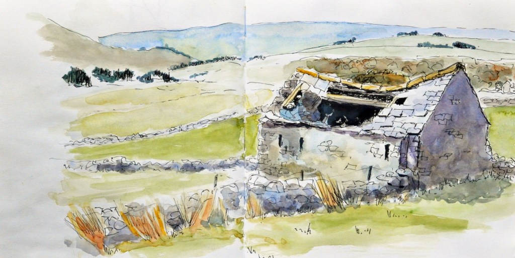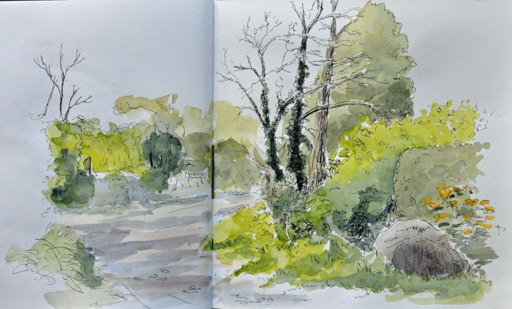 Here are some sketches, either painted on location, or soon afterwards, and usually bound in a sketchbook – so these particular ones are not for sale. However, if you would like to commission a painting of one of these scenes, or just something in this style (usually pen and wash or mixed media), then do get in touch through the CONTACT page.